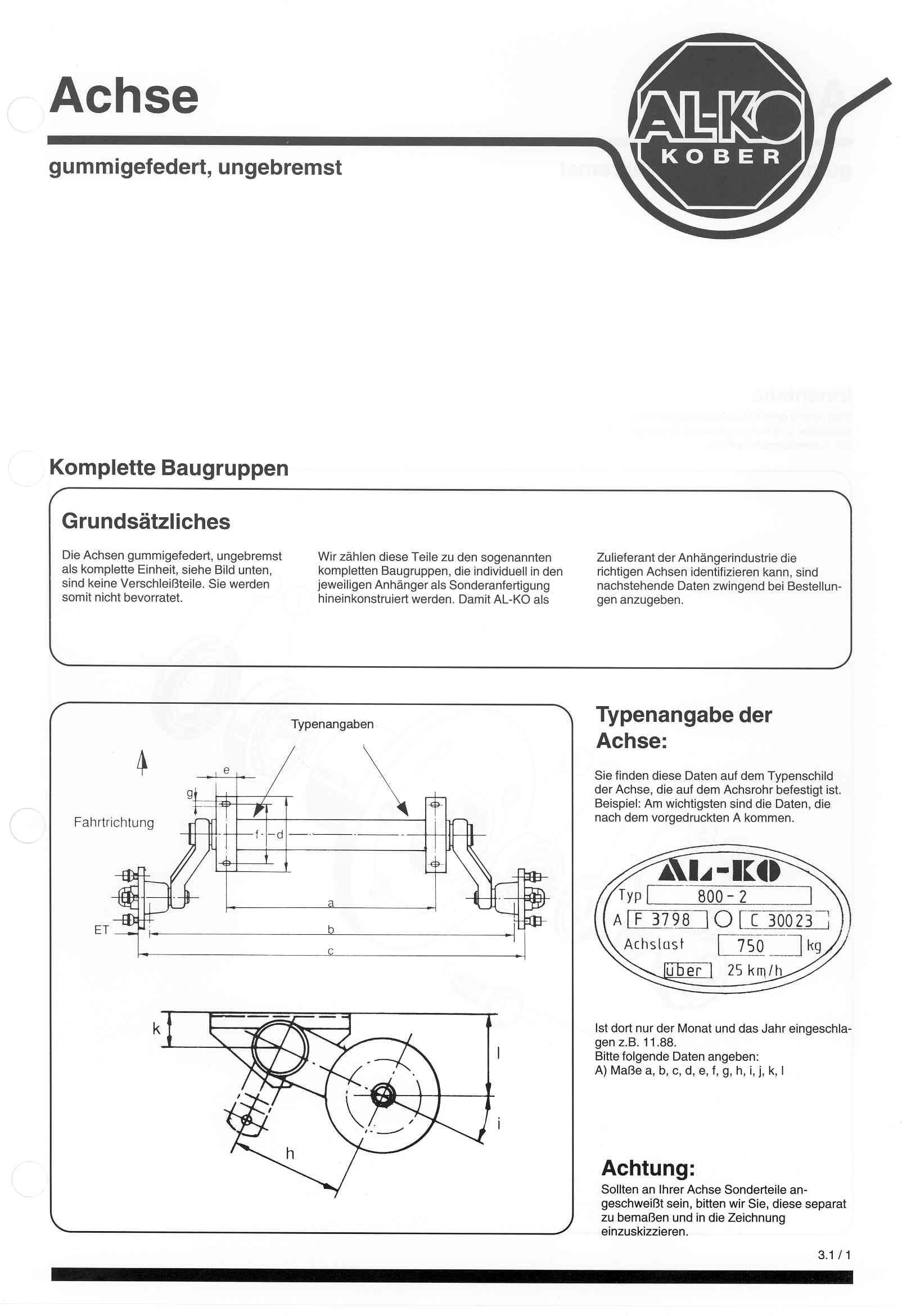 und Explosionszeichnungen für ungebremste Alko Gummifederachsen bis Baujahr 1992