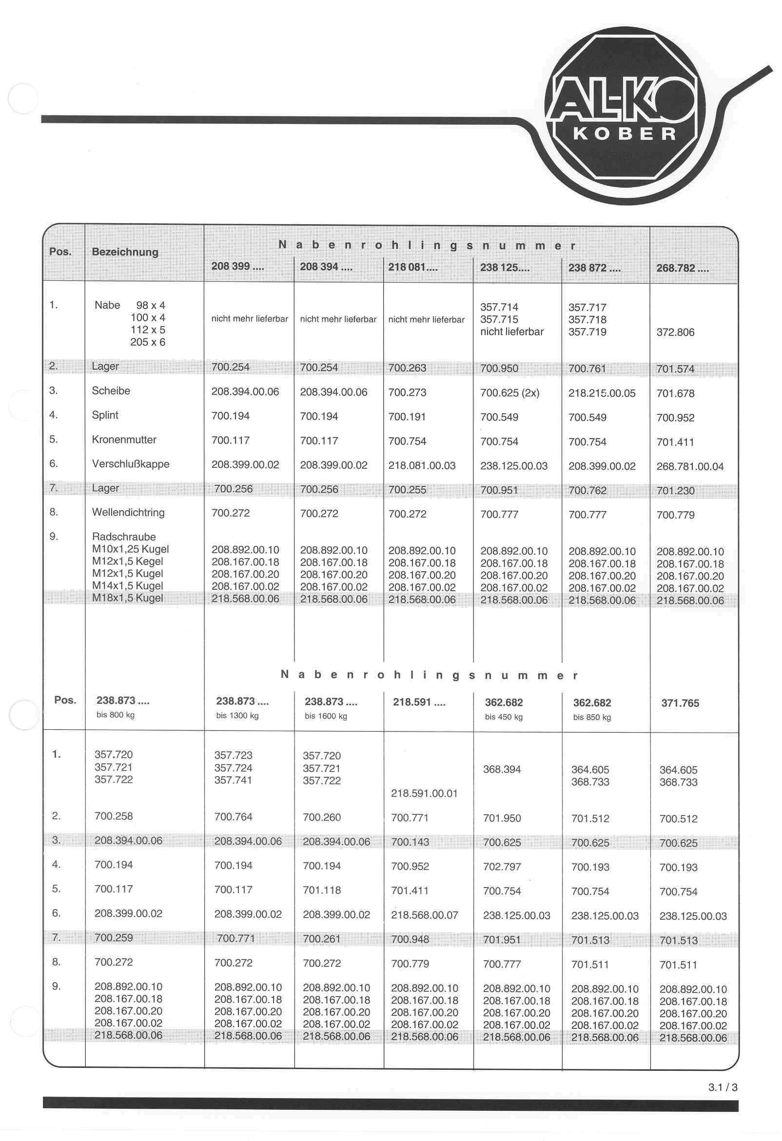 und detaillierten Explosionszeichnungen für Alko Achsen ohne Bremse bis