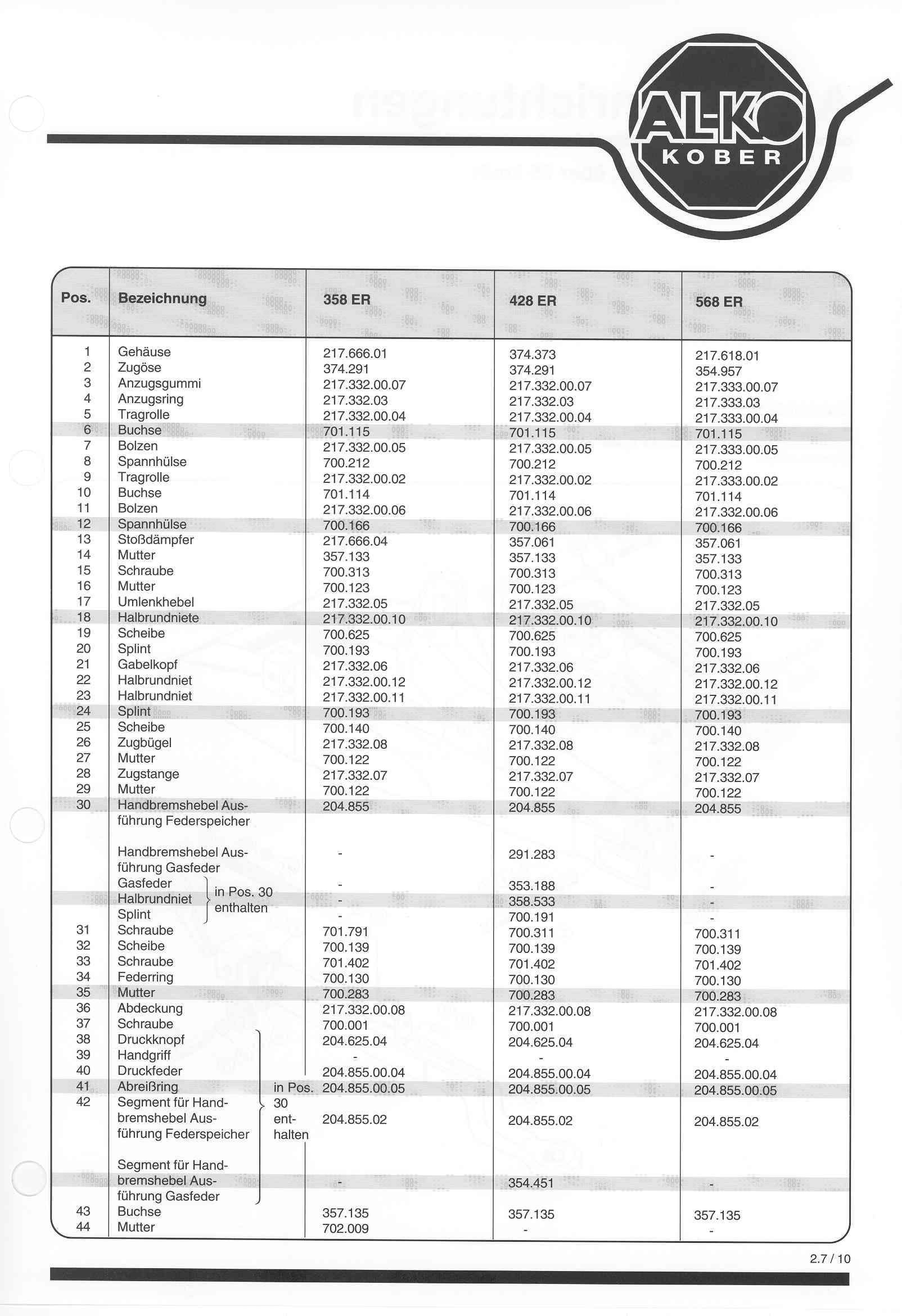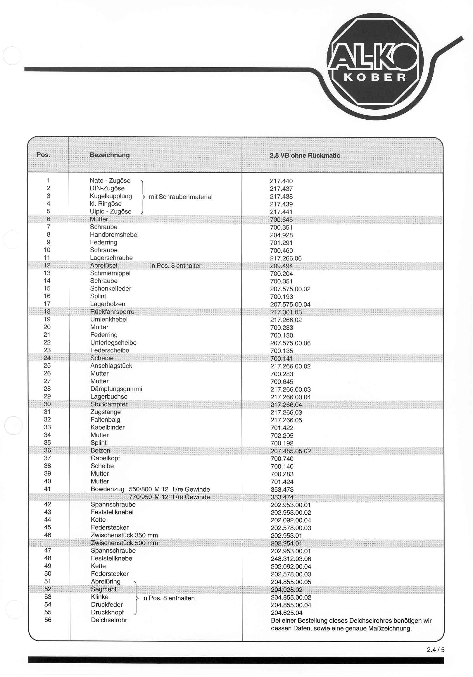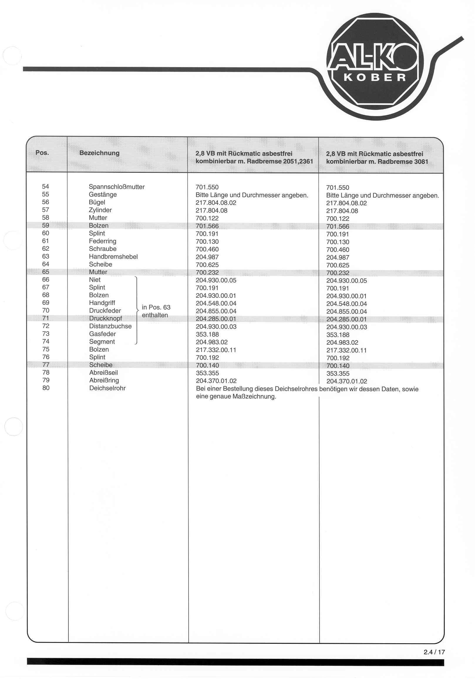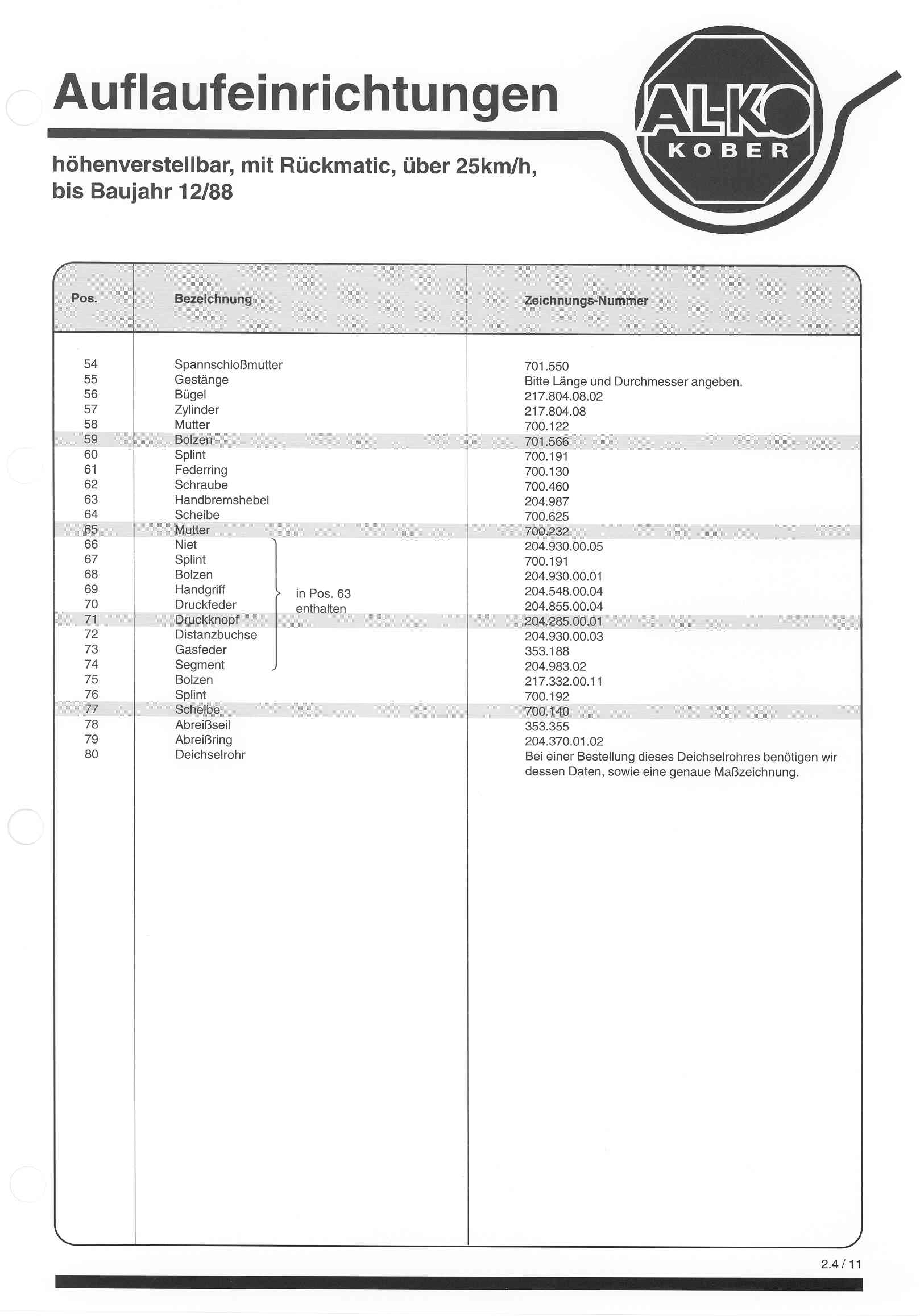 | - ohne Rückmatik höhenverstellbar Zahnkopf bis Baujahr 12/88 |