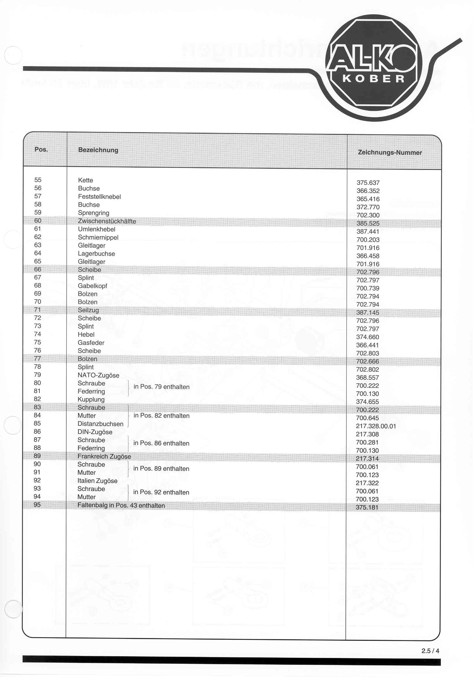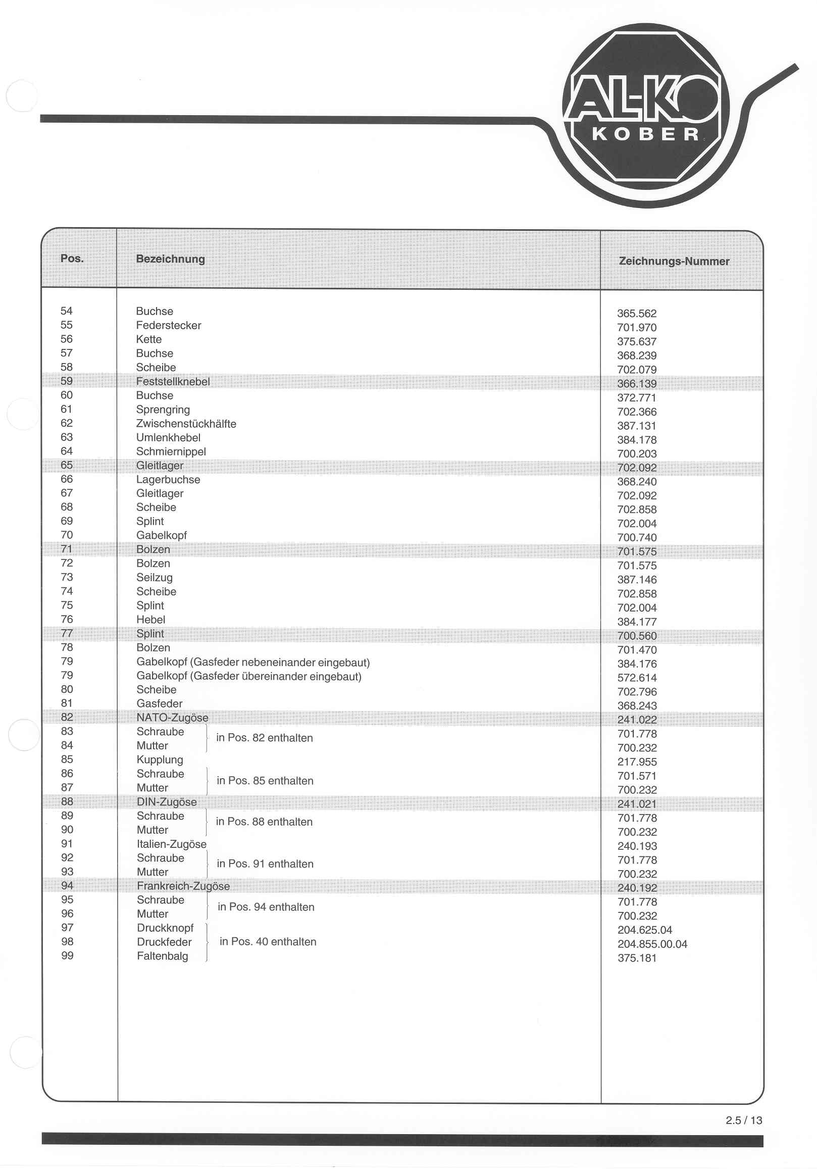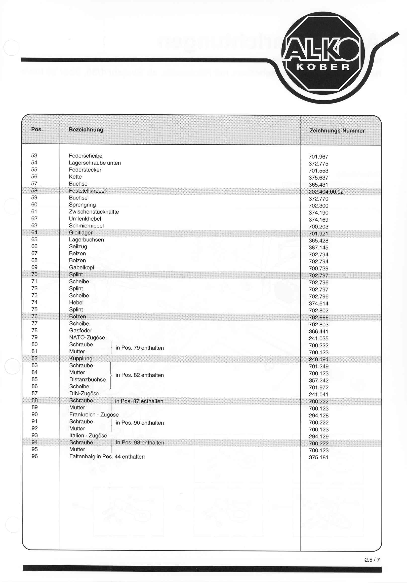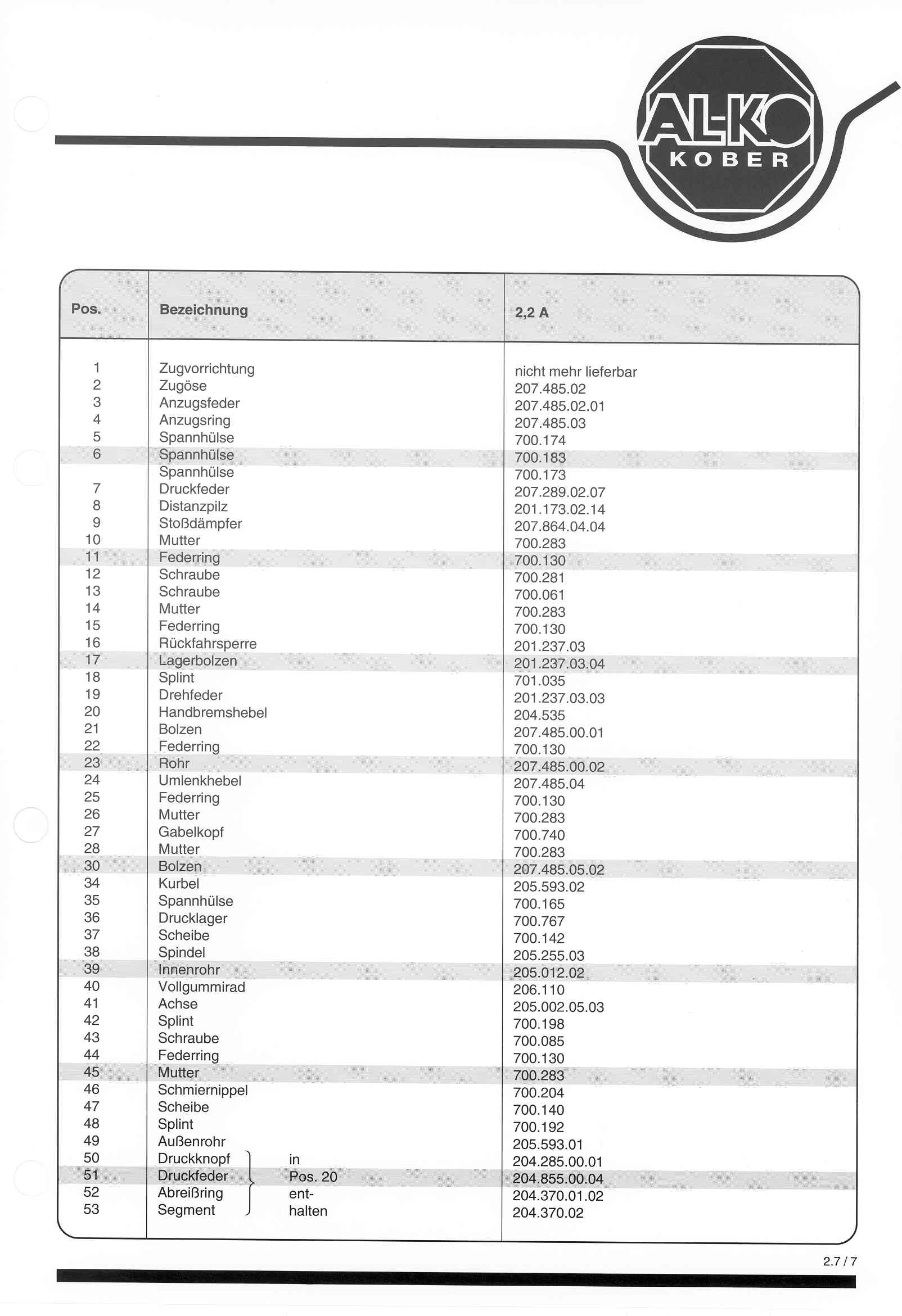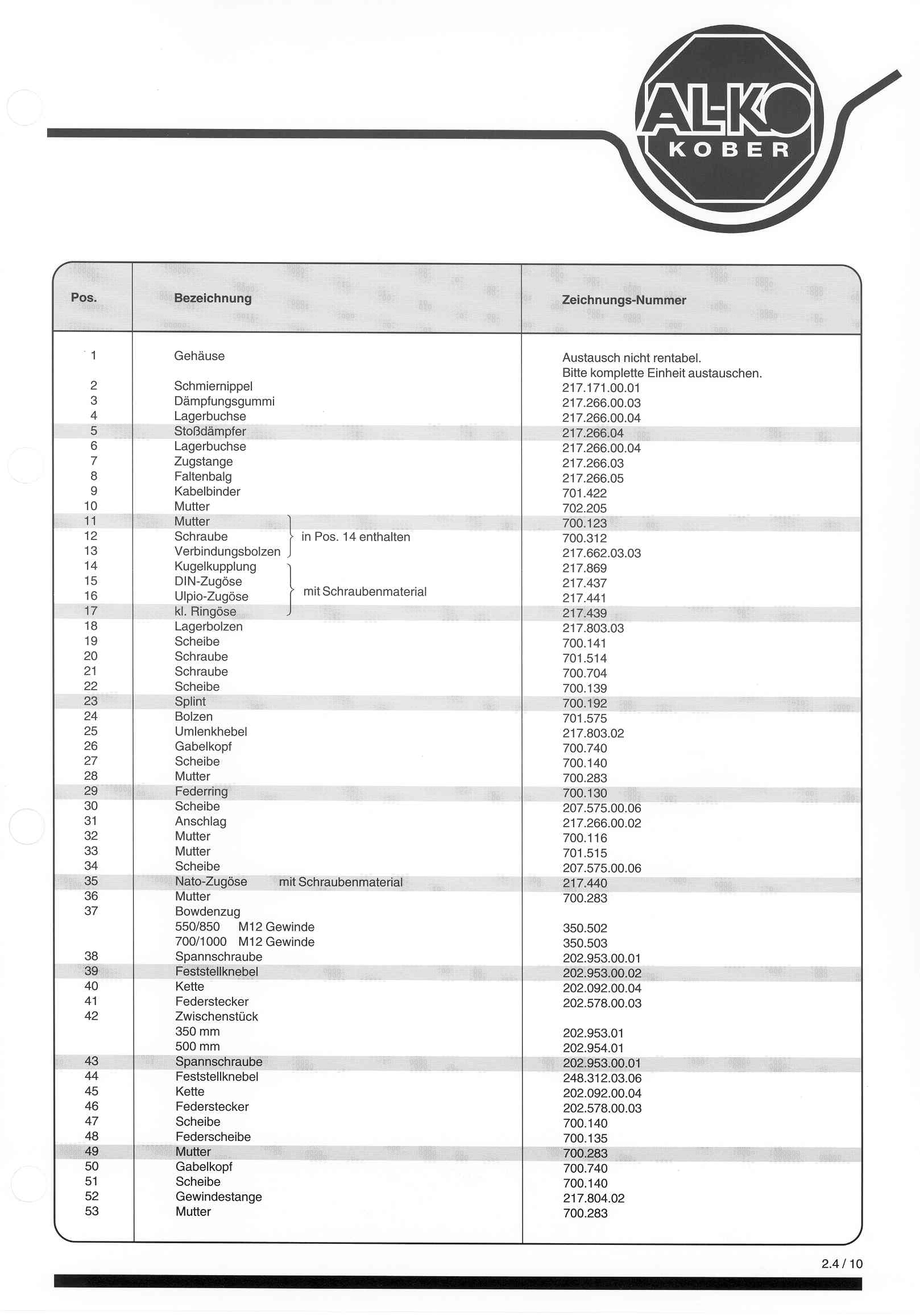 | - ohne Rückmatik höhenverstellbar Zahnkopf bis Baujahr 12/88 |