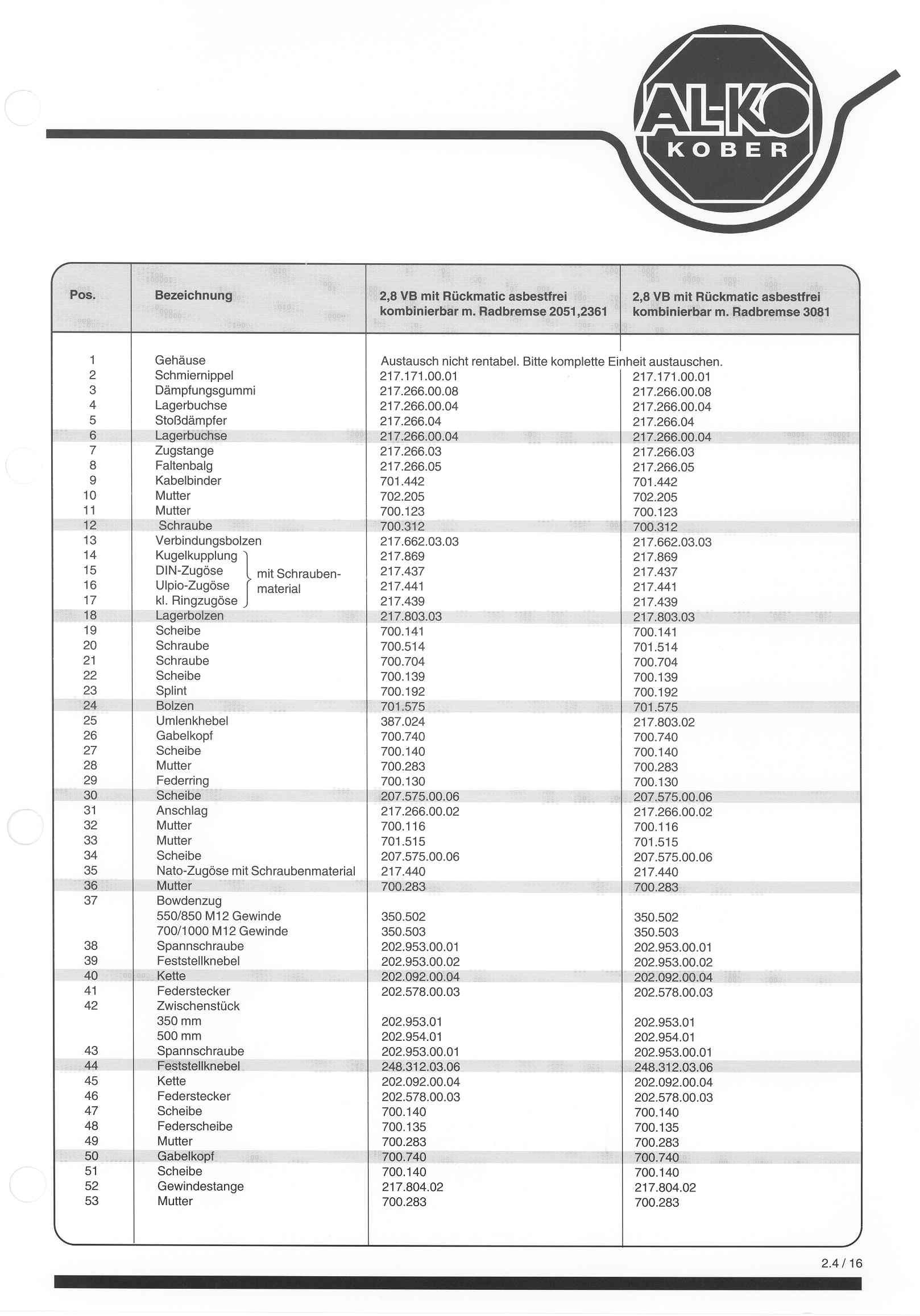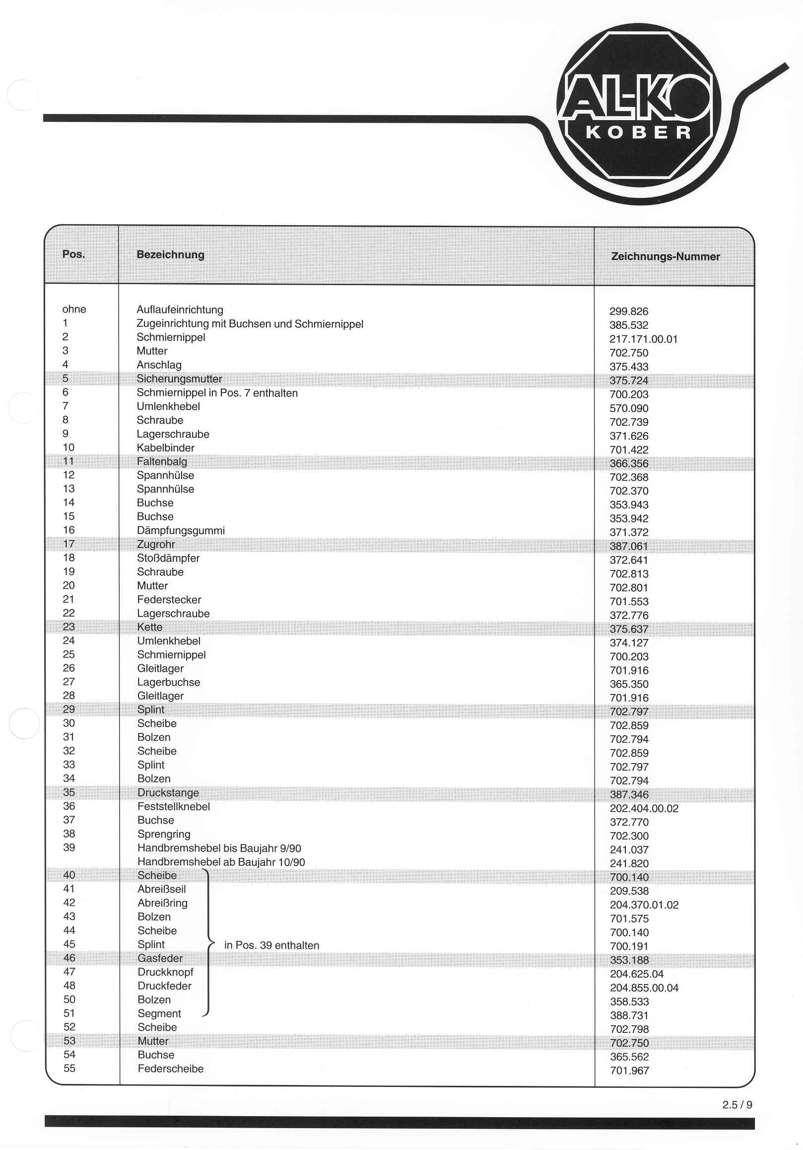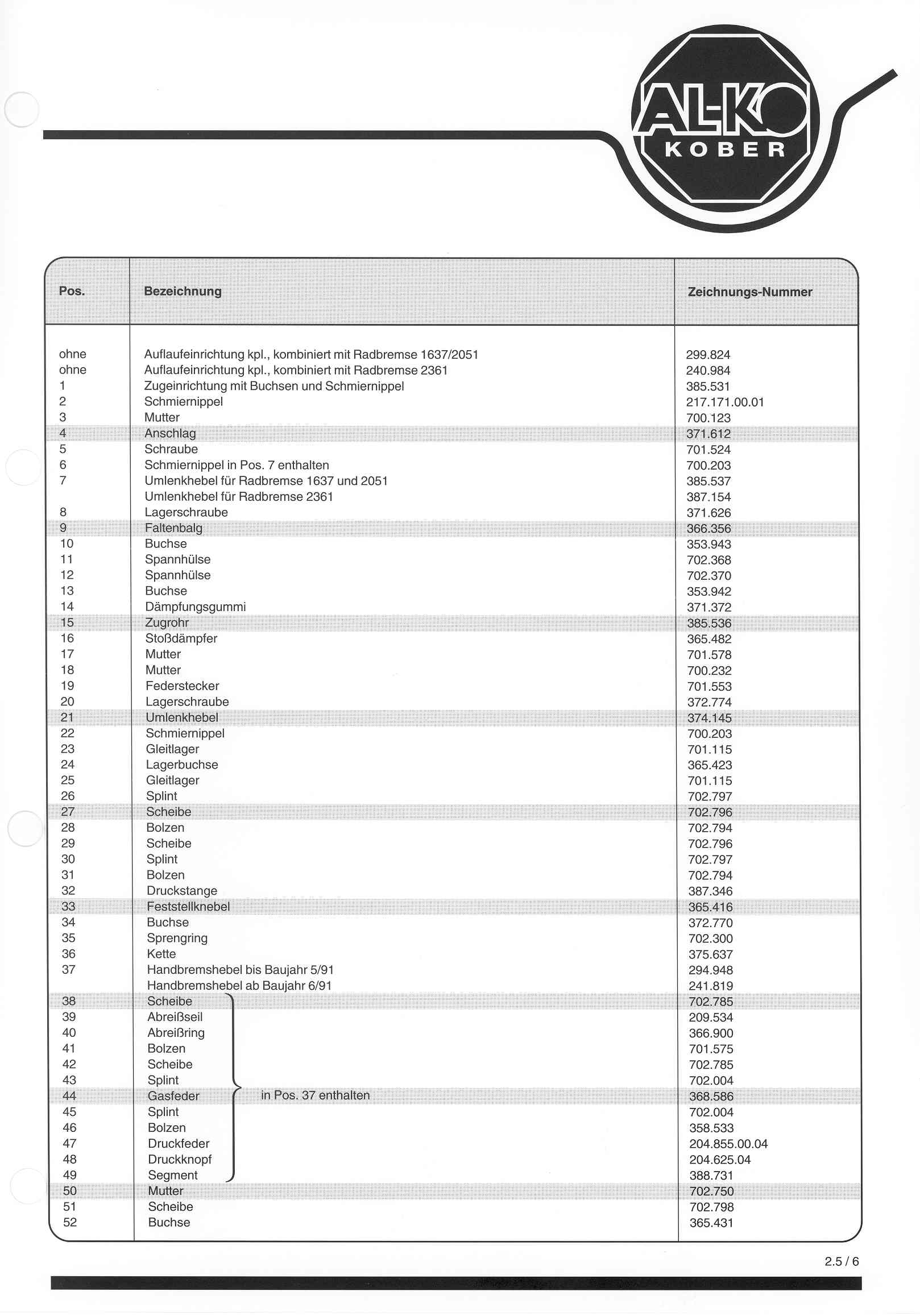 | - mit Rückmatik höhenverstellbar Zahnkopf bis Baujahr 12/88 |