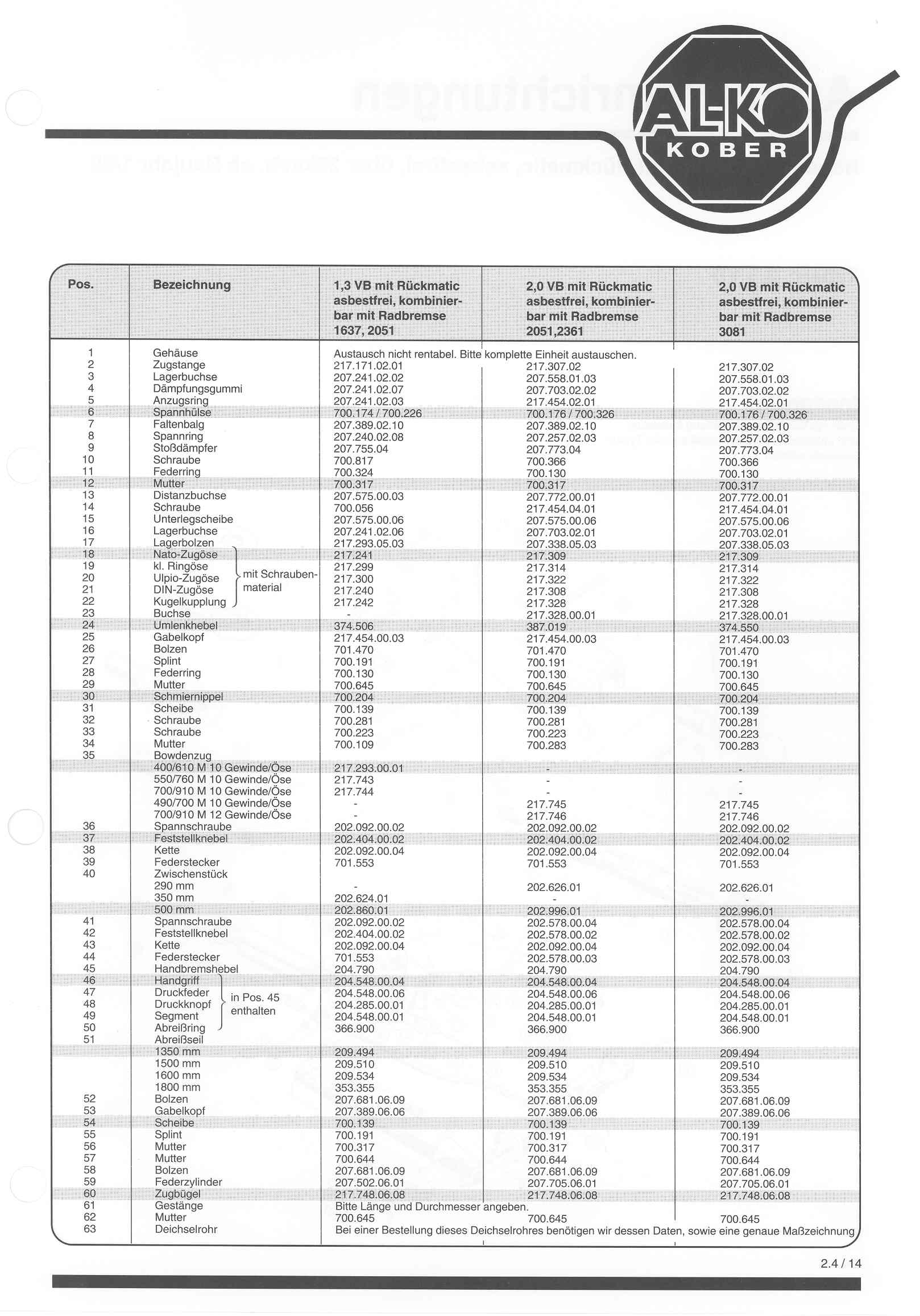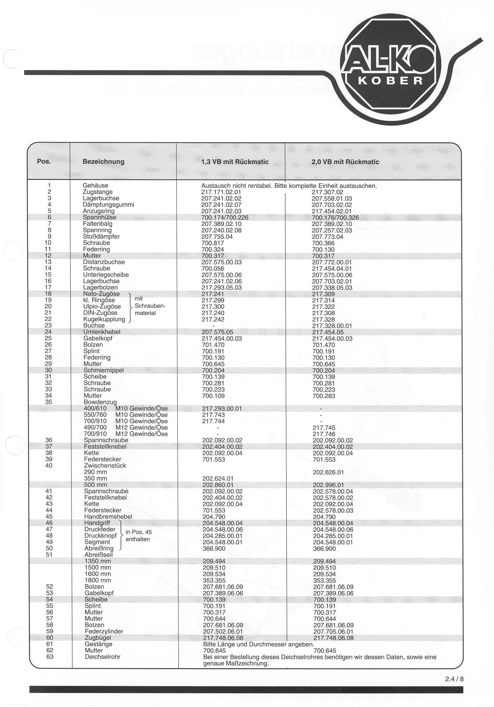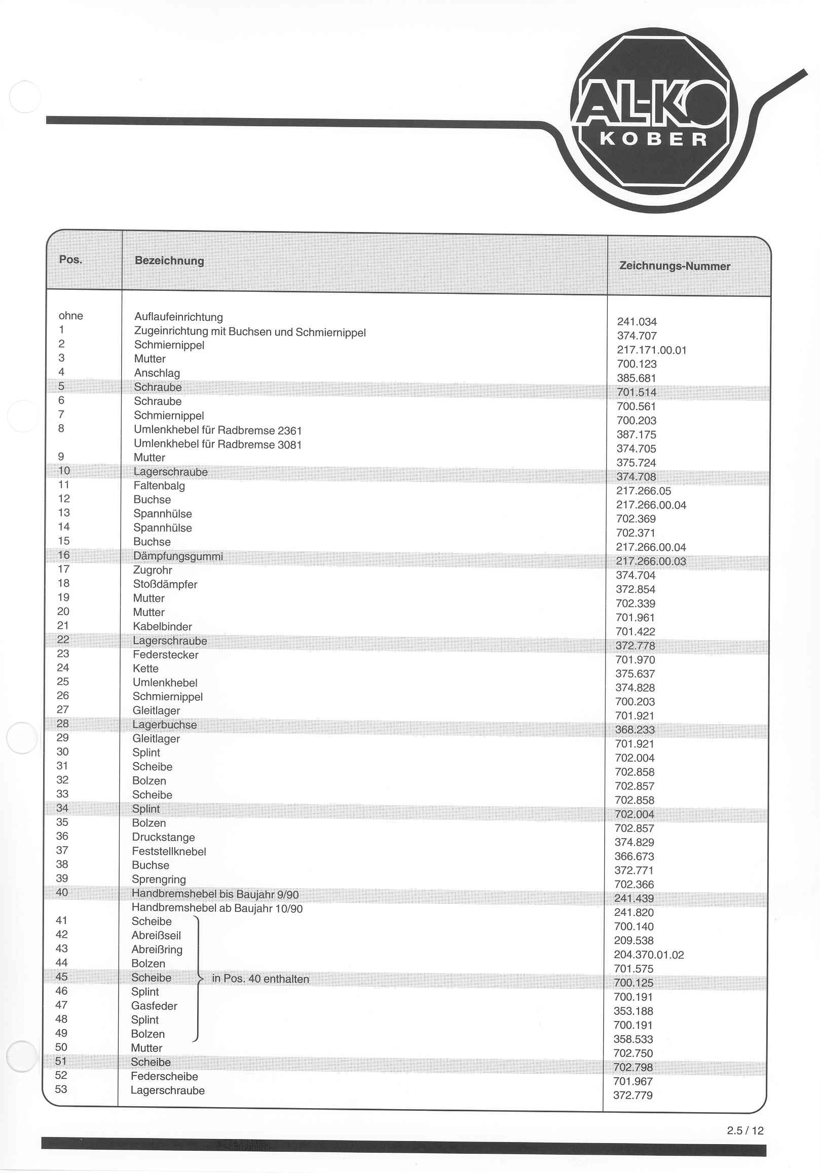 | - mit Rückmatik höhenverstellbar Zahnkopf bis Baujahr 12/88 |